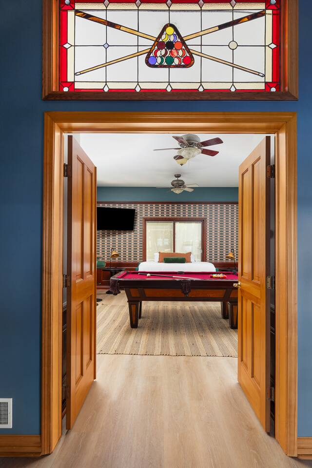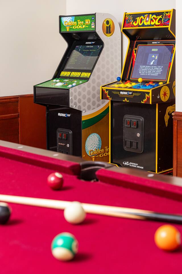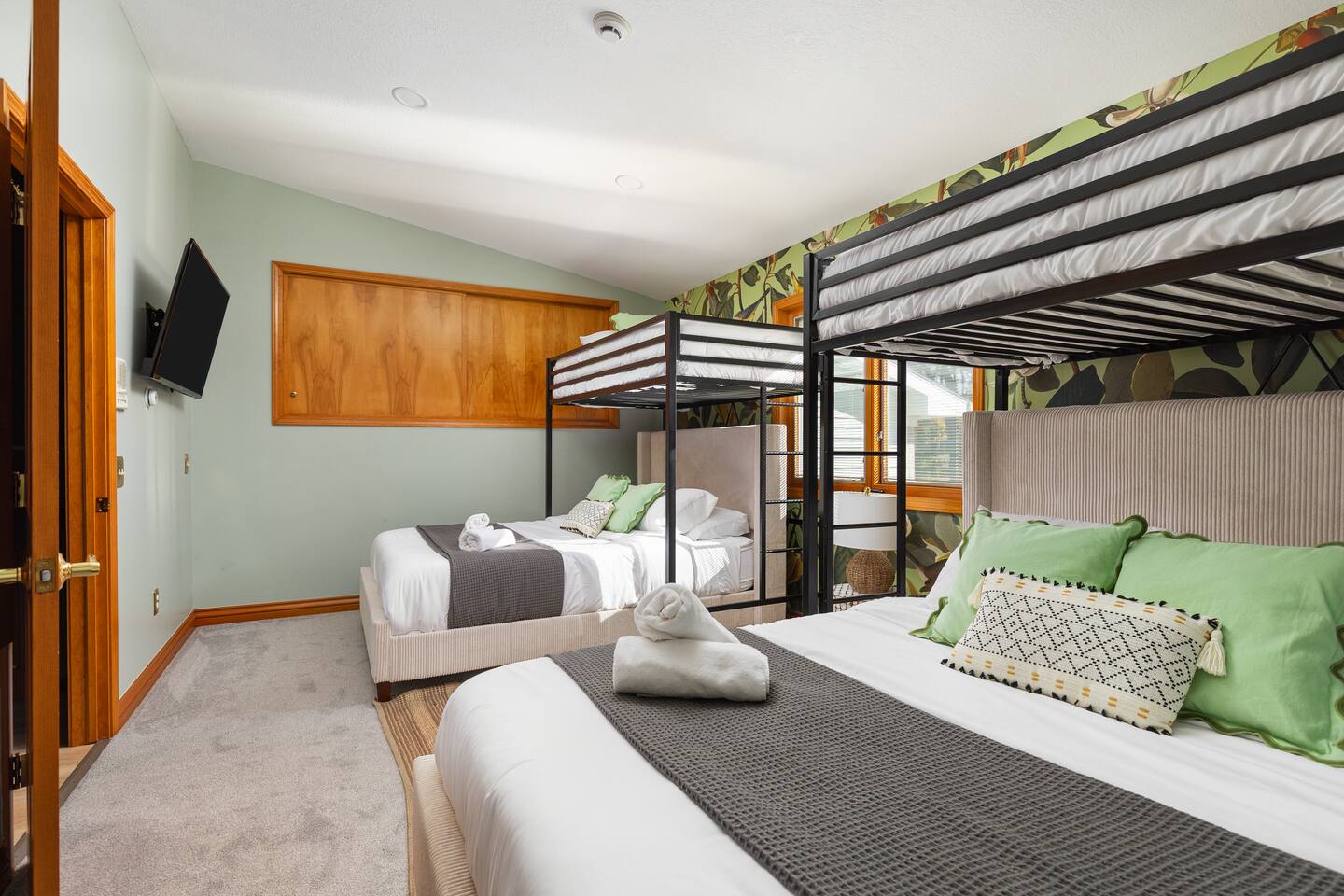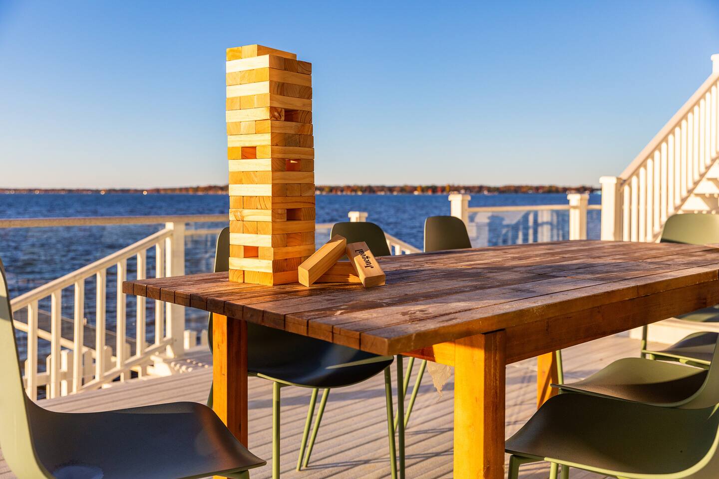 Highlights & Amenities Sleeps up to 24 guests with 6 private bedrooms and multiple lounge areas Indoor Heated Pool (approx. 80°F year-round) – enjoy rain or shine Private Golf Simulator Room – practice your swing or host mini-tourneys Lakefront Fire Pit & Seasonal Dock – stunning views, sunsets, and s’mores Massive Game Room – pool table, arcade games, shuffleboard Hot Tub with Lake Views – perfect for unwinding after a long day Three-Tier Deck and spacious patio for outdoor dining and lounging Fully Stocked Chef’s Kitchen with premium appliances and ample cookware Smart TVs, High-Speed Wi-Fi, Keyless Entry In-home Laundry & On-Site Parking for multiple vehicles Sleeping Arrangements – Spacious & Group-Friendly Spread across three levels, each sleeping area is thoughtfully arranged to maximize comfort and flexibility for groups of all kinds. Main Floor Bedroom 1: Queen-over-Queen Bunk Beds (Sleeps 8) Bedroom 2/Game Room: Twin Bed with Trundle (Sleeps 2) Living Room: Large sectional sofa and extra seating for group hangouts Upper Level Bedroom 3: King Bed (Sleeps 2) Bedroom 4: King Bed (Sleeps 2) Bedroom 5: Twin-over-Queen Bunk Beds (Sleeps 6) Living Room 2: Comfortable lounge area with additional seating Lower Level Bedroom 6: King Bed + Twin Bed with Trundle (Sleeps 4) Note: This room is located near the HVAC system. For your comfort, we provide earplugs and a white noise machine to ensure a restful sleep. Entertainment & Relaxation for Everyone Indoor Pool: Swim anytime, rain or shine Hot Tub: Soak while enjoying serene lake views Golf Simulator: Play your favorite courses without leaving the house Game Room: Includes arcade classics, basketball shootout, pool table & more Fire Pit by the Lake: Roast marshmallows or enjoy late-night conversations under the stars Outdoor Living That Shines Three-Tier Deck: Perfect for morning coffee or sunset cocktails Lakefront Patio: Grill, dine, and lounge with views of Houghton Lake Private Dock (seasonal): Swim, relax, or launch kayaks (Note: shallow lakefront not ideal for docking boats—see below) Spacious Yard: Great for lawn games or relaxing by the water Perfect for All Occasions This home is designed to create memorable experiences for every type of group: Cook together in the gourmet kitchen Share meals on the deck with panoramic lake views Let kids enjoy endless entertainment in the pool and game room Host movie nights or retreat sessions in multiple living areas Gather around the fire pit for stories, stargazing, and s’mores Explore the Best of Northern Michigan Your home base is perfectly positioned for adventure, relaxation, and local charm: Water Activities & Nature Escapes Houghton Lake (0.0 mi) – Just steps away! Enjoy boating, fishing, kayaking, jet skiing, and swimming Lapham's Marina (4.5 mi) – Full-service marina for boat rentals and water sports equipment South Higgins Lake State Park (13 mi) – Sandy beaches, crystal-clear water, and hiking trails North Higgins Lake State Park (15 mi) – More serene and wooded; great for kayaking, fishing, and family picnics Top-Rated Golf Courses Pineview Highlands (3.1 mi) – Scenic 18-hole course with views of Houghton Lake White Deer Country Club (5.3 mi) – Challenging yet fun layout through tree-lined fairways The Quest Golf Club (20.5 mi) – Top-ranked course with excellent conditions Forest Dunes Golf Club (21 mi) – Nationally acclaimed and bucket-list worthy Grayling Country Club (23 mi) – A more casual course with local flair Breweries, Distilleries & Dining Copper Kettle Distilling Co. (0.8 mi) – Cozy atmosphere, hand-crafted spirits, and BBQ Dead Bear Brewing Co. (24.3 mi) – Great beer selection, live music, and hearty pub food Paddle Hard Brewing Co. (24.5 mi) – Family-friendly brewpub with unique local flavors Rolling Oak Brewing Co. (25 mi) – Small-batch beers and a welcoming vibe Family-Friendly Attractions Roscommon Zoo (12.3 mi) – Hands-on, intimate zoo with exotic and local animals Trestle Park (2.2 mi) – Lakeside park with scenic walking trails and picnic spots Houghton Lake Historical Village (5.2 mi) – Explore Michigan’s past with charming historical buildings Winter Fun Snow Snake Ski & Golf (26 mi) – Enjoy skiing, tubing, and winter sports in colder months Important Info & House Rules No pets No smoking indoors (violations subject to $500 fee) No parties or unapproved events Must be 25+ to book (photo ID may be required) Quiet hours: 11:00 PM – 8:00 AM Locked areas (garage and storage closets) not for guest use Unauthorized late checkout (15+ min): $50+ fee Other Notes 1. The shoreline is shallow; not ideal for docking boats. You may anchor further out at your own risk. 2. Dock is seasonal and removed roughly from November through April. 3. Exterior security cameras are installed for guest safety. 4. Property runs on well water. Filtered pitcher provided, but bottled water is recommended if preferred.